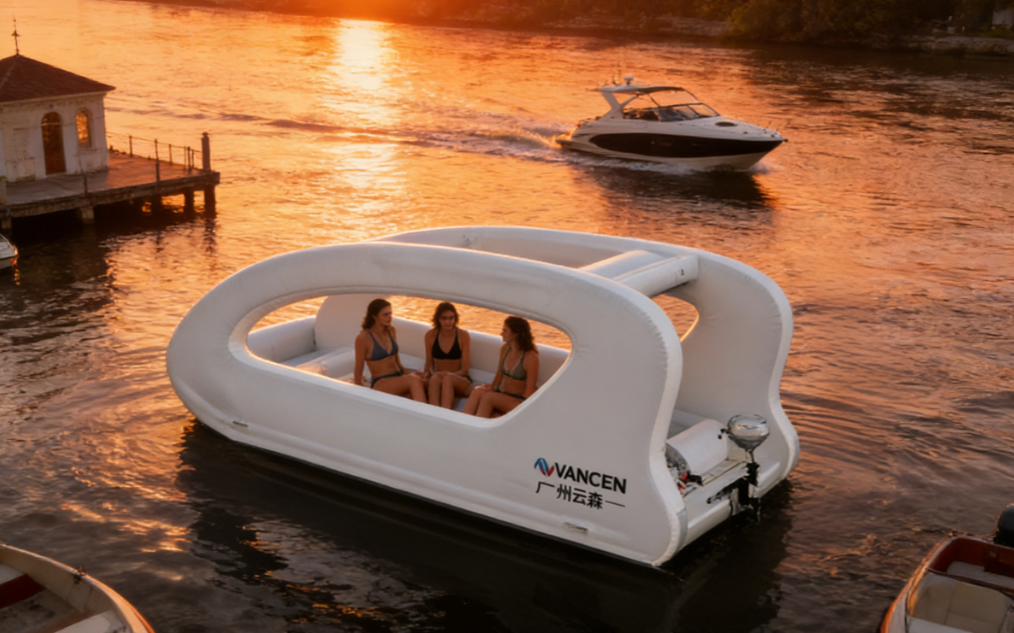 The VANCEN inflatable floating yacht is the ultimate affordable family boat for endless fun. It lets you cruise your favorite waters effortlessly in total comfort, boasting a center console, seating for 4-6 people and a roomy sundeck. Exceptionally stable, it’s perfect for beginners, boat rentals, family outings and even overnight on-water camping trips.