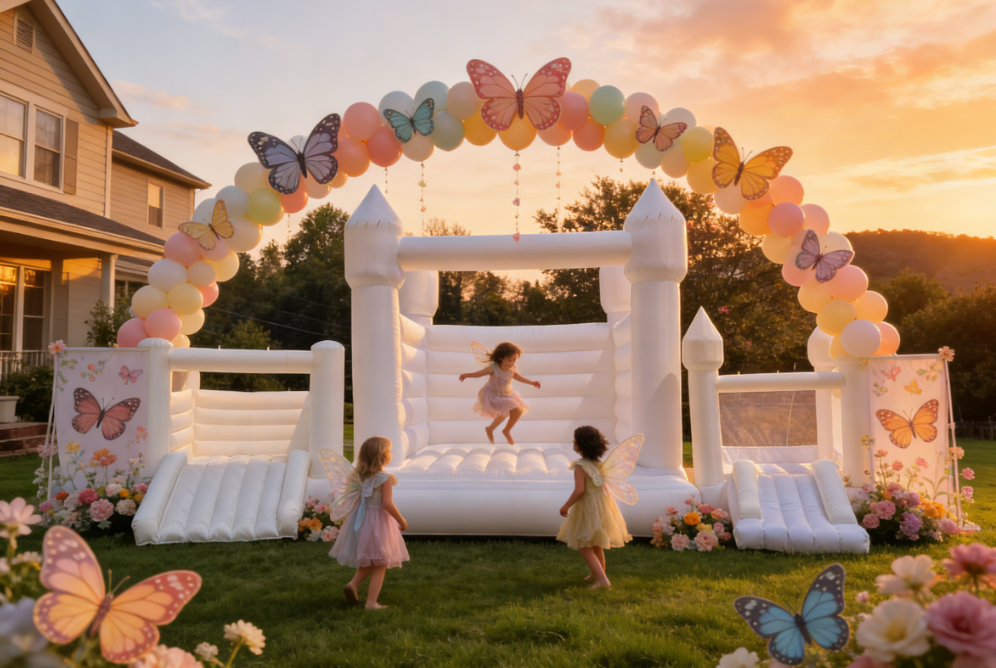 White Bounce House With Ball Pool & Blower For Kids Indoor And Outdoor Summer