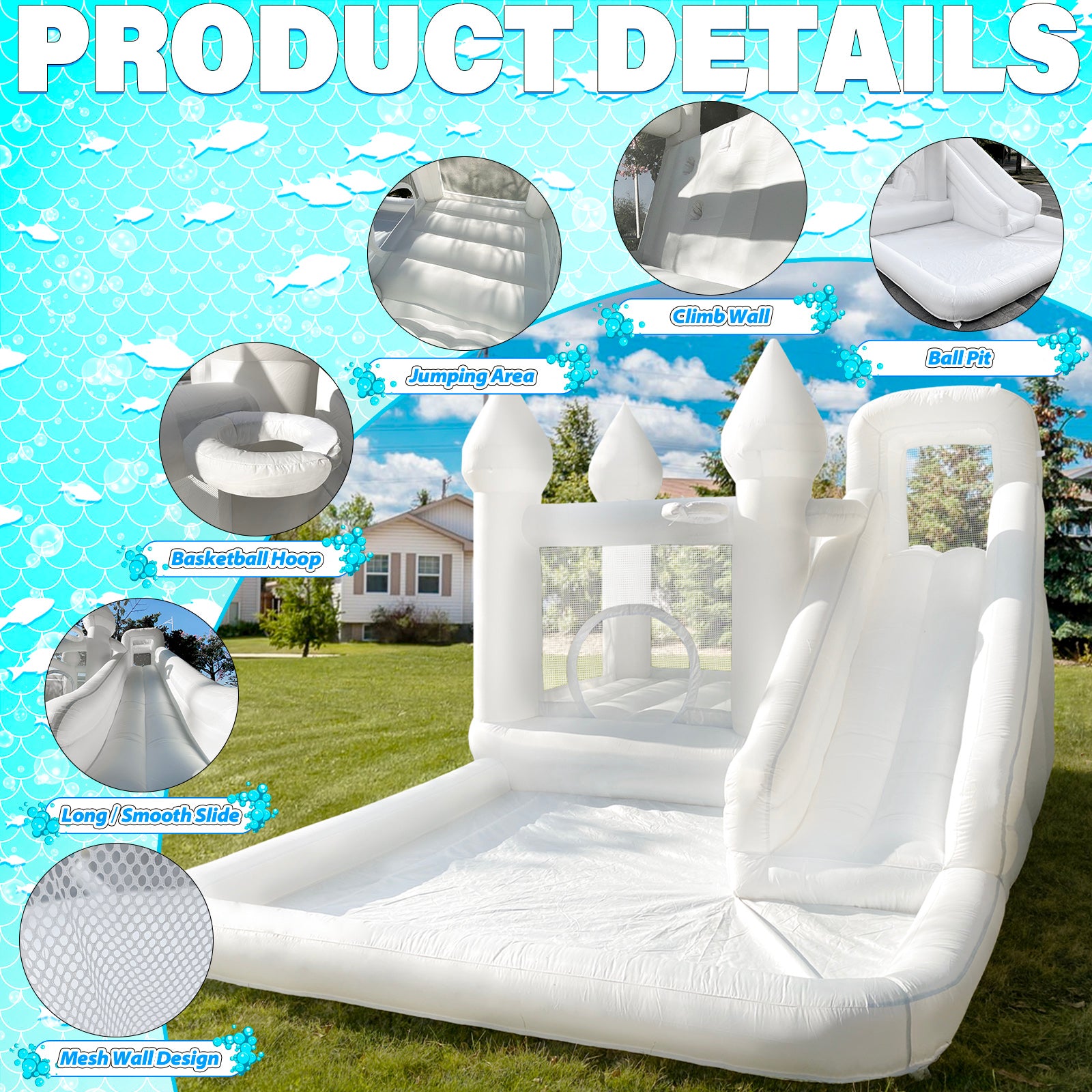 - 【Bounce House Makes Your Party More Special】This white bounce house with ball pit will bring fun to your party and is very popular with kids. It is the best playground choice for children's birthday parties and the latest trend of fairy tale castles. We hope that our bounce house can provide you with a unique experience and release all your excitement and joy.