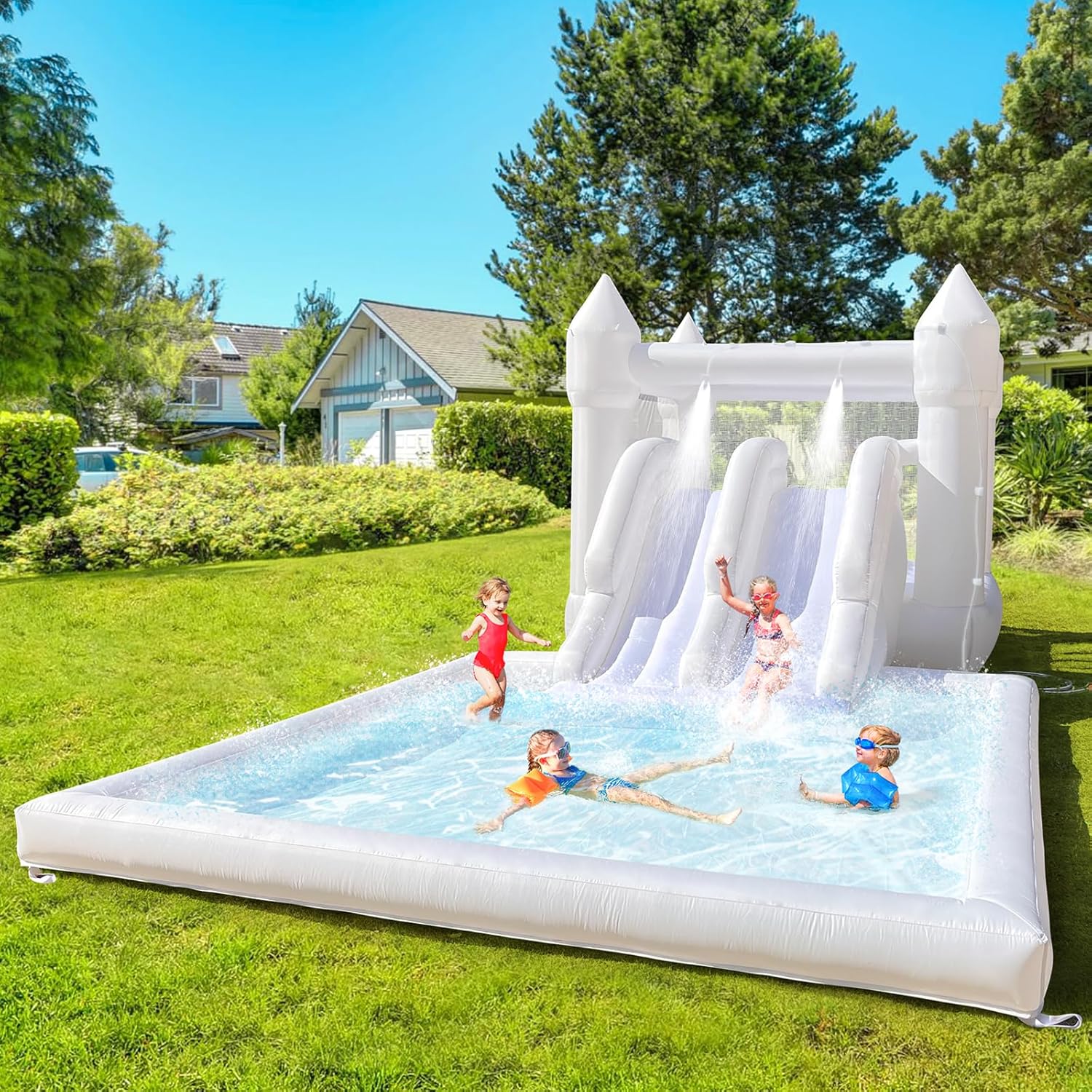Double Slide Water Whote Bounce House Indoor Outdoor Oxford Bounce Castle, Climb 3-in-1 Playhouse