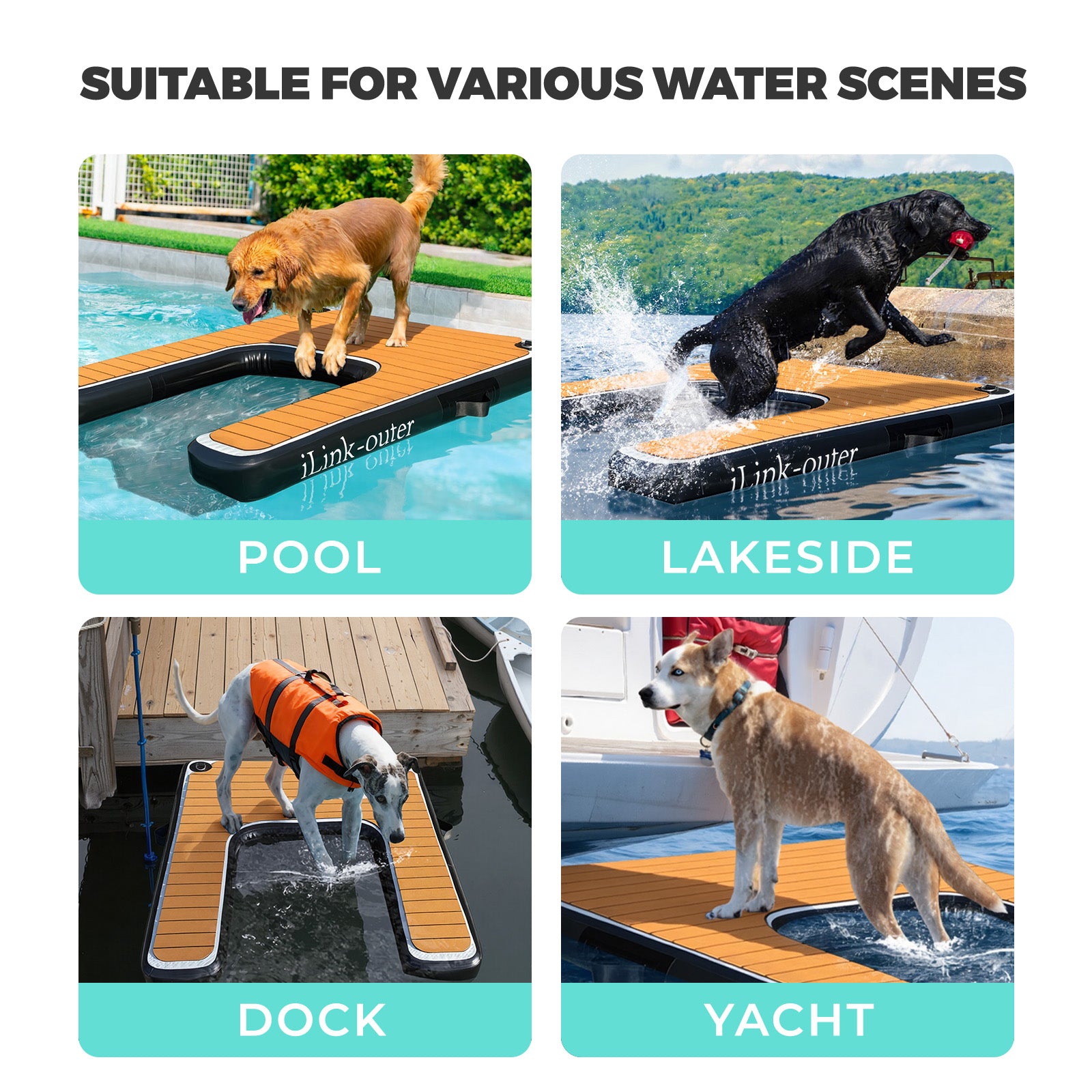 Ideal for swimming pools, lakes, docks and boats, this water ramp creates a stable & gentle access path, letting your dog enter and exit the water with total confidence.
