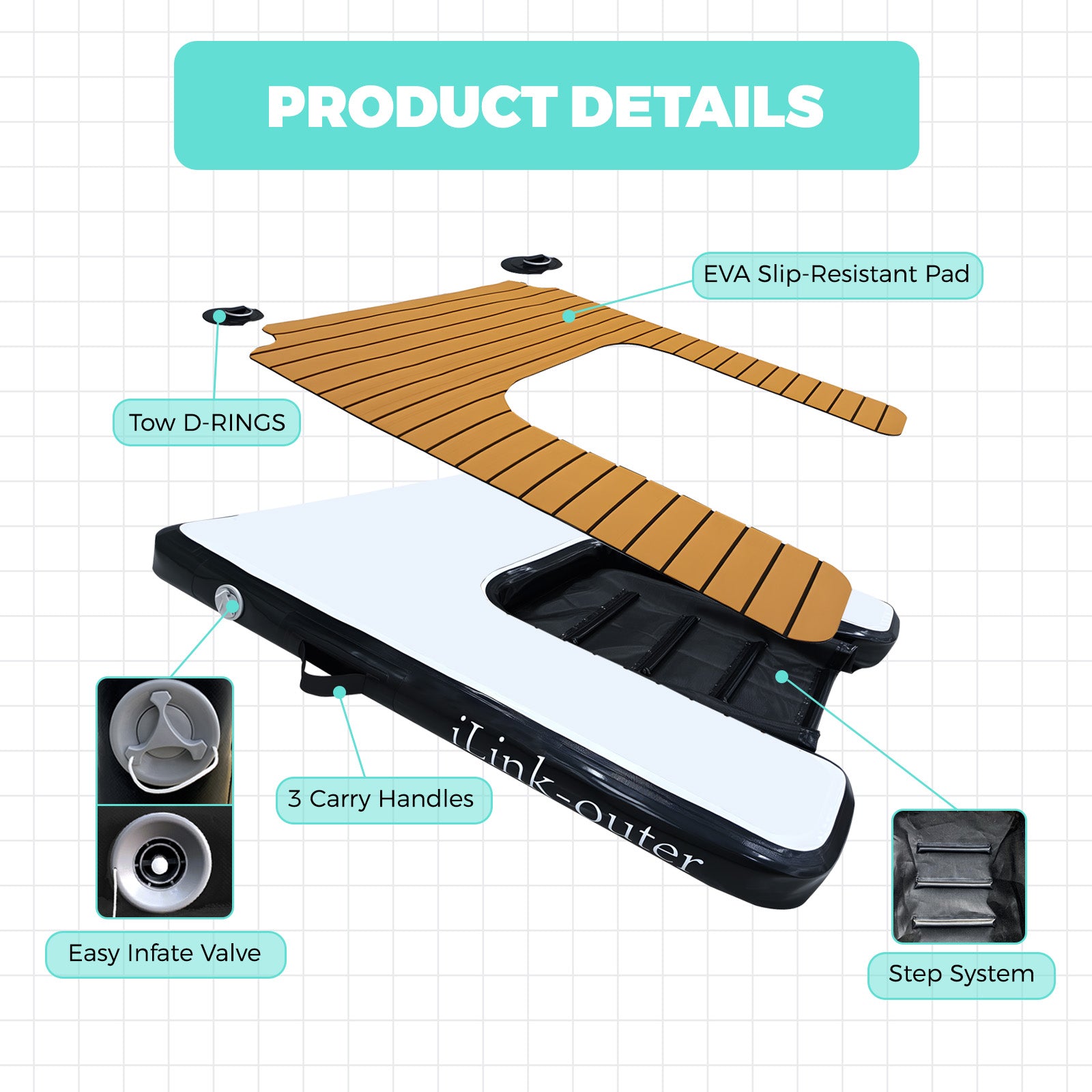 Equipped with built-in D-rings and matching fixing ropes, it can be firmly anchored to pool edges, docks or boats to maintain steady support while your pet climbs.