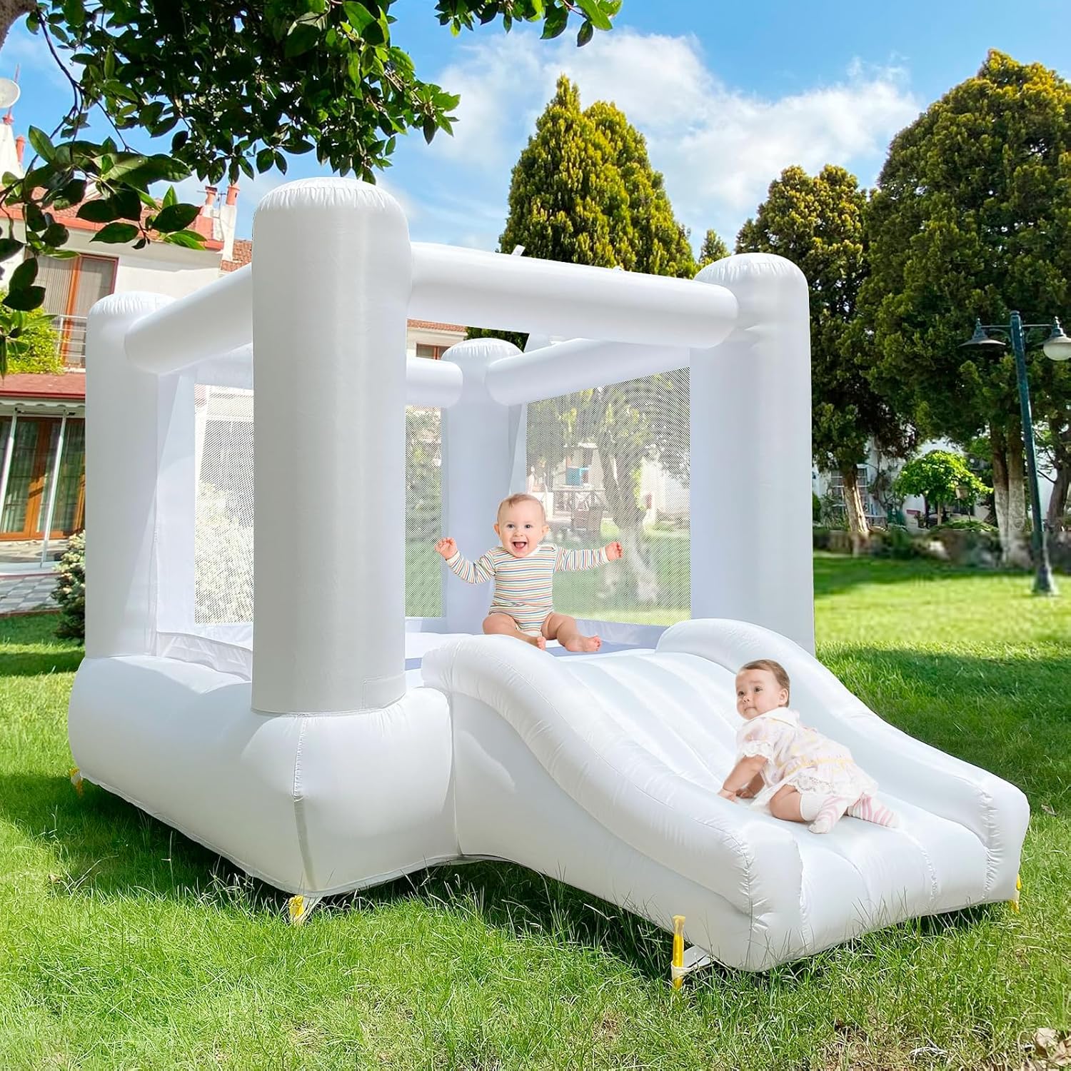 - Family Bond: Our white bounce house is more about creating more opportunities to get along with children. Time to spend time with children is not only a kind of enjoyment, but also an opportunity to build a deep relationship and create good memory. Choose us and spend joy time with your children!