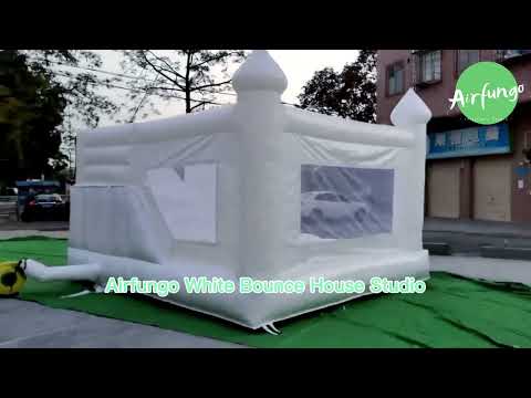 - MATERIAL : The best material PVC tarpaulin, waterproof and UV resistant; Double seams everywhere; Every node is reinforced. The design of the D-ring makes it easy to install balloons and decorations. You can use your imagination to decorate this white jumping bed as you want.