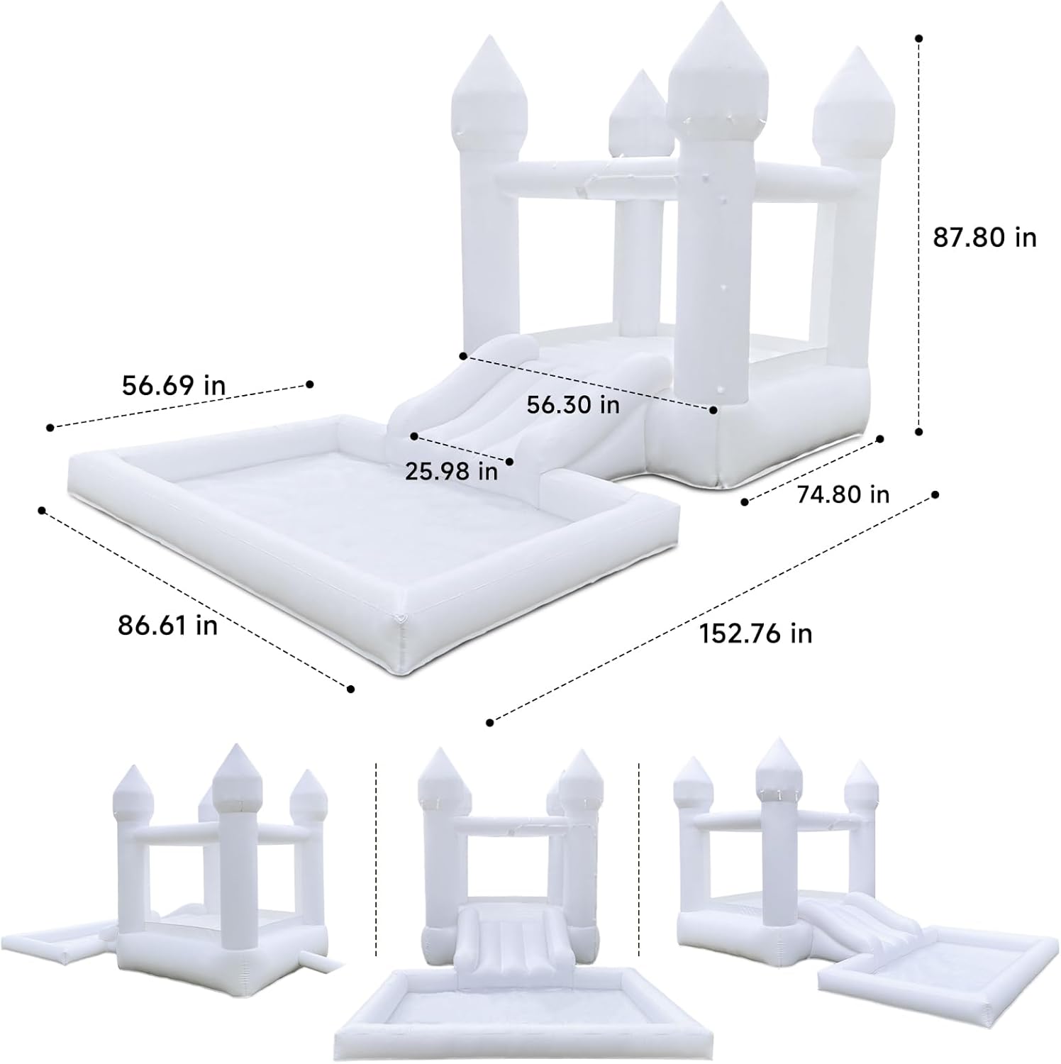 - 【White Bounce House for kids ages 2-6 】Experience endless fun with our inflatable bounce house for kids featuring a bounce zone with ball pool and a thrilling slide for kids. It can accommodate up to 4 children aged 2-6 at once, making it perfect for playdates and parties. Reducing screen time and building children's coordination and balance ability!